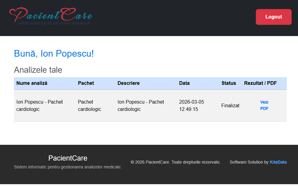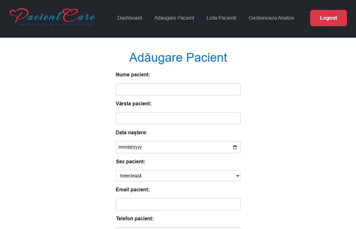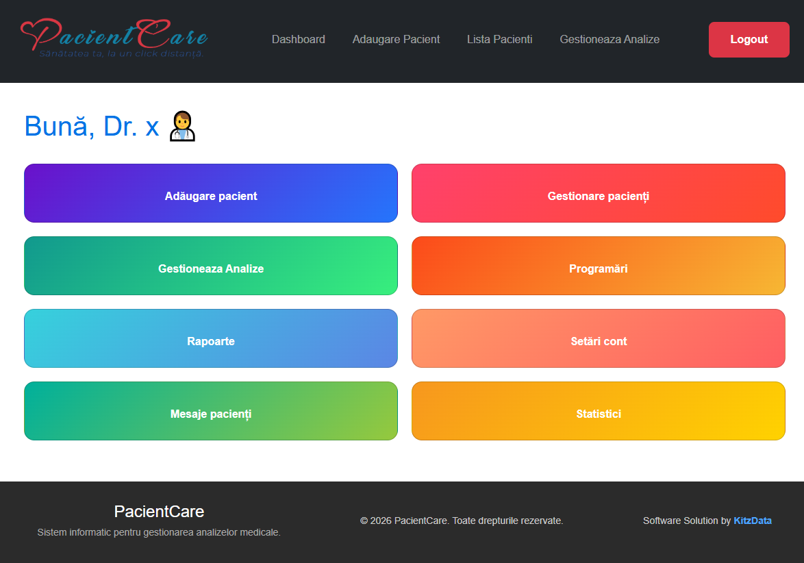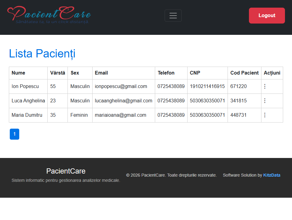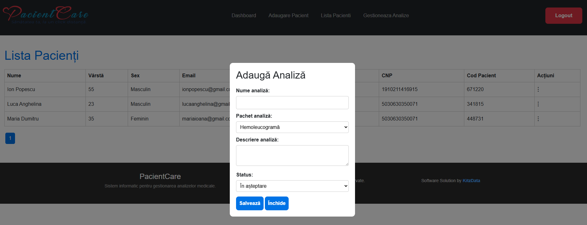 ✔ Medicul poate înregistra și gestiona pacienții în sistem